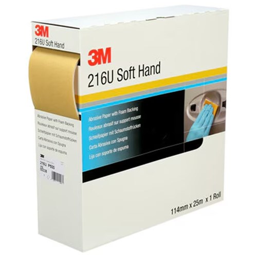 The 3M Soft Hand Abrasive Roll 216U have a soft foam backing (softhand) that allows for more uniform pressure and conformability during the sanding process.