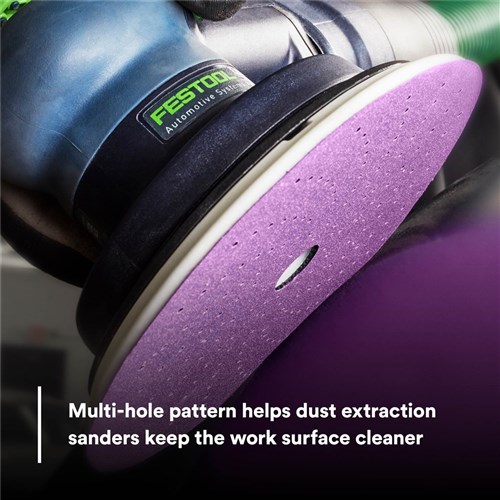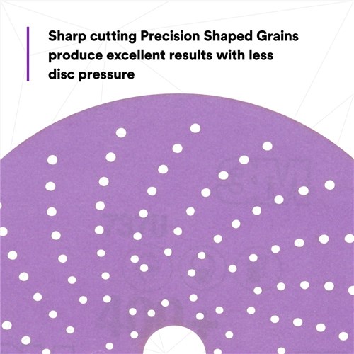 3M Cubitron II Hookit Clean Sanding Abrasive Disc 737U combines the highest 3M technology for automotive repair and is ideal for removing paint, shaping body filler, fine feather-edging, final prep before priming, or even surface structure removal of clearcoats and preparation of blending areas. Its long-lasting triangular shaped grain and multi-hole pattern for superior dust extraction allow for a long disc life. The wide range of available grades offer discs for coarse body work up to fine sanding of blending areas. The 3M Hookit system makes for quick disc change-outs.