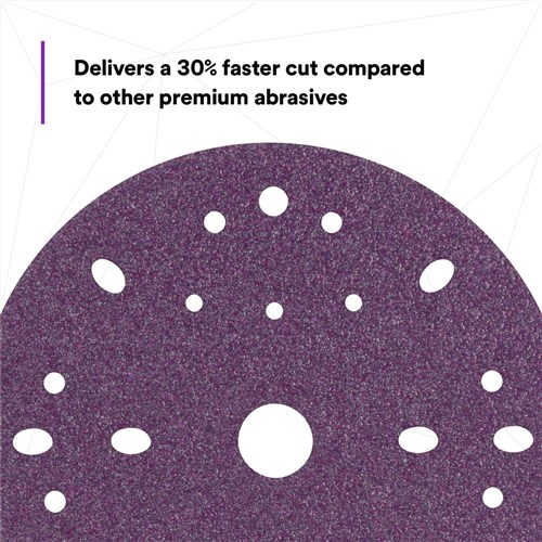 3M Cubitron II Hookit Clean Sanding Abrasive Disc 737U combines the highest 3M technology for automotive repair. Its long-lasting triangular shaped grain and multi-hole pattern for superior dust extraction allow for a long disc life. The wide range of available grades offer discs for coarse body work up to fine sanding of blending areas. The 3M Hookit system makes for quick disc change-outs. This disc is perfect for removing paint, shaping body filler, fine feather-edging, final prep before priming, or even surface structure removal of clearcoats and preparation of blending areas.