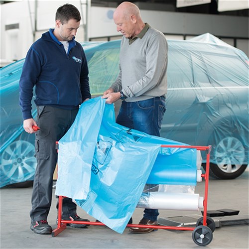 Automatic Film Cutter for plastic foil and masking paper, supplied in a bag with belt strap for easy storage. The special design of this cutter guarantees that cutting is simple, safe and prevents damage to the vehicle. It ensures fast and effortless cutting of the masking foil. Requires 2 x AA batteries (not included).