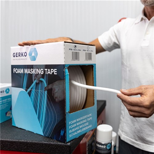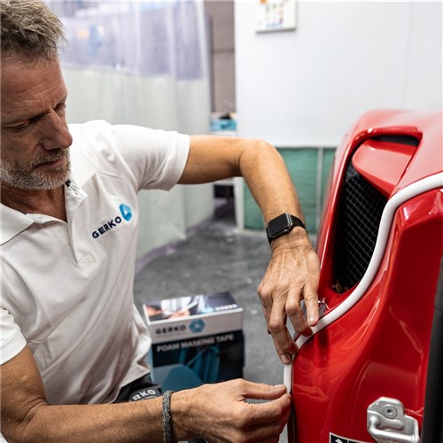 Gerko foam masking tape is the product used for masking gaps between engine covers, doors and body parts. It perfectly protects the joint, absorbs paint and prevents edge formation.