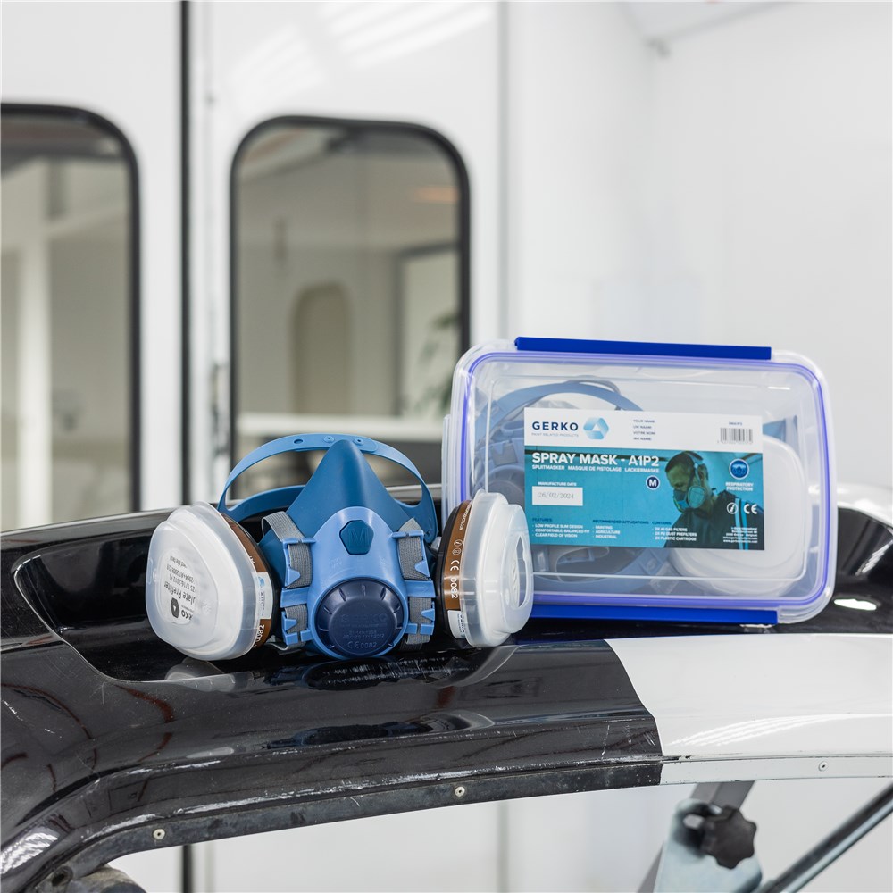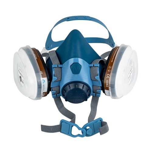 Spray mask that protects against inhalation of isocyanates, from paint or solvents. The mask fits snugly around nose and mouth. This PPE is designed to protect against hazards that can cause irreparable damage to health. Each mask comes in an airtight storage box with two A1 carbon filters and two P2 pre-filters. Replacement is necessary after a period of use of up to 40 hours. Complies with the UNE-EN 140 standard and is CE-certified under number 0159.