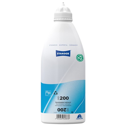The Standox Standoblue Basecoat Mix 200 Transparent Metallic 1500ml is a specific automotive refinishing paint mixing tint used withn the Standox waterborne basecoat system.