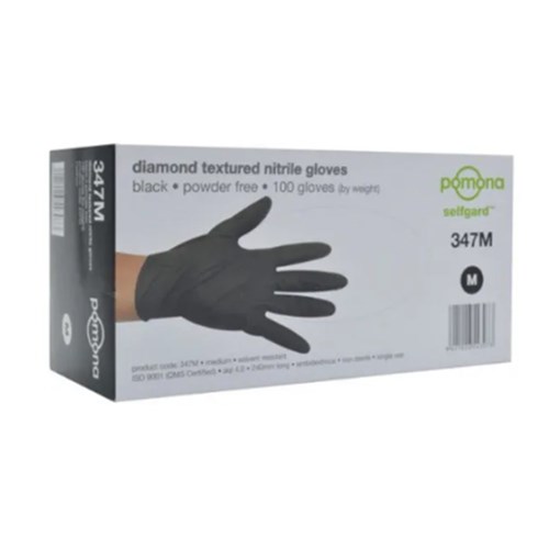 SALE POMONA 240MM NITRILE BLACK DIAMOND GRIP P/FREE GLOVES L 100/BOX