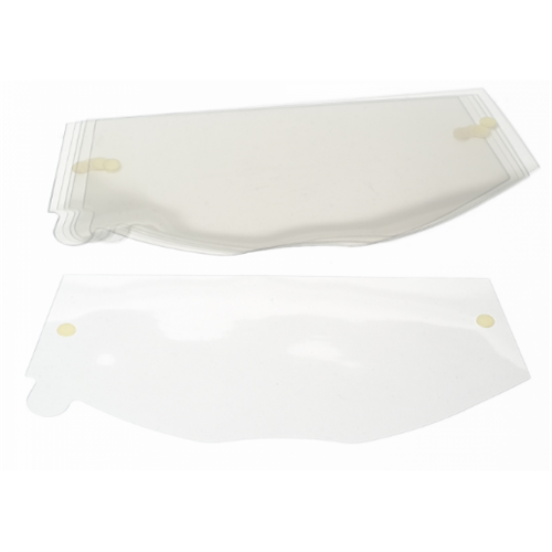 These peel-off visor covers fit to the outside of the SR 570 face shield to provide a removeable layer that protects the visor from scratches and that can be disposed of when soiled without having to replace the whole visor.